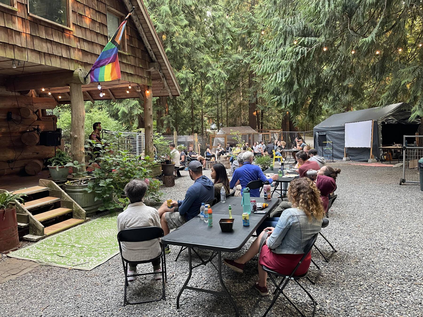 We have a unique opportunity for five groups to camp overnight in the woods surrounding the Haus. A vegan breakfast will be provided for campers on the morning of Sunday, August 3rd. There is a maximum of two people per campsite. Campsites are not handicap- or vehicle-accessible. There is a 100′-300′ hike down a lit path to arrive at the campsites. All campsites have been reserved. Please email events@roosterhaus.org to be added to the camping waitlist.