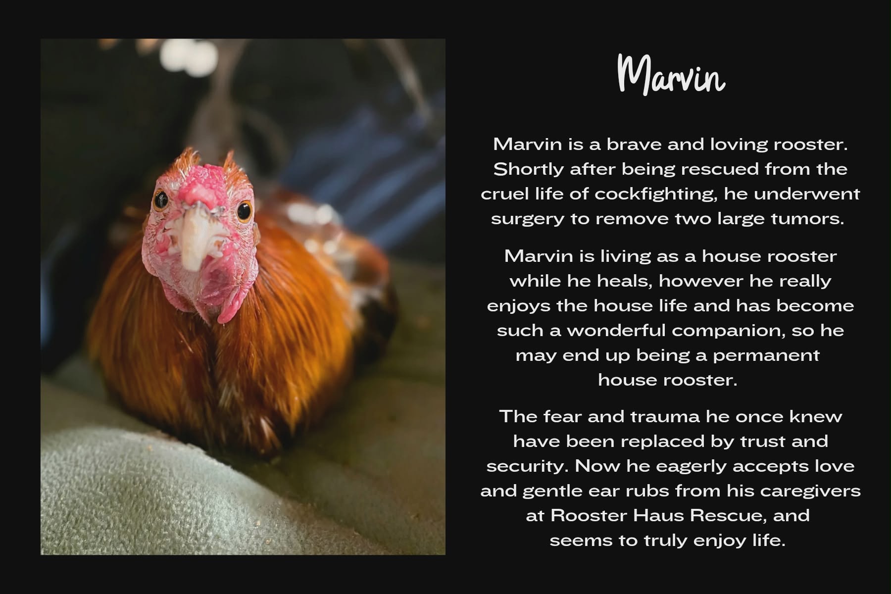 Sponsoring a Survivor Suite provides its occupants a spacious and safe suite to call their own, nutritious food and snacks, comfy bedding, warm coops, medical care, and enrichment to help them heal and thrive.