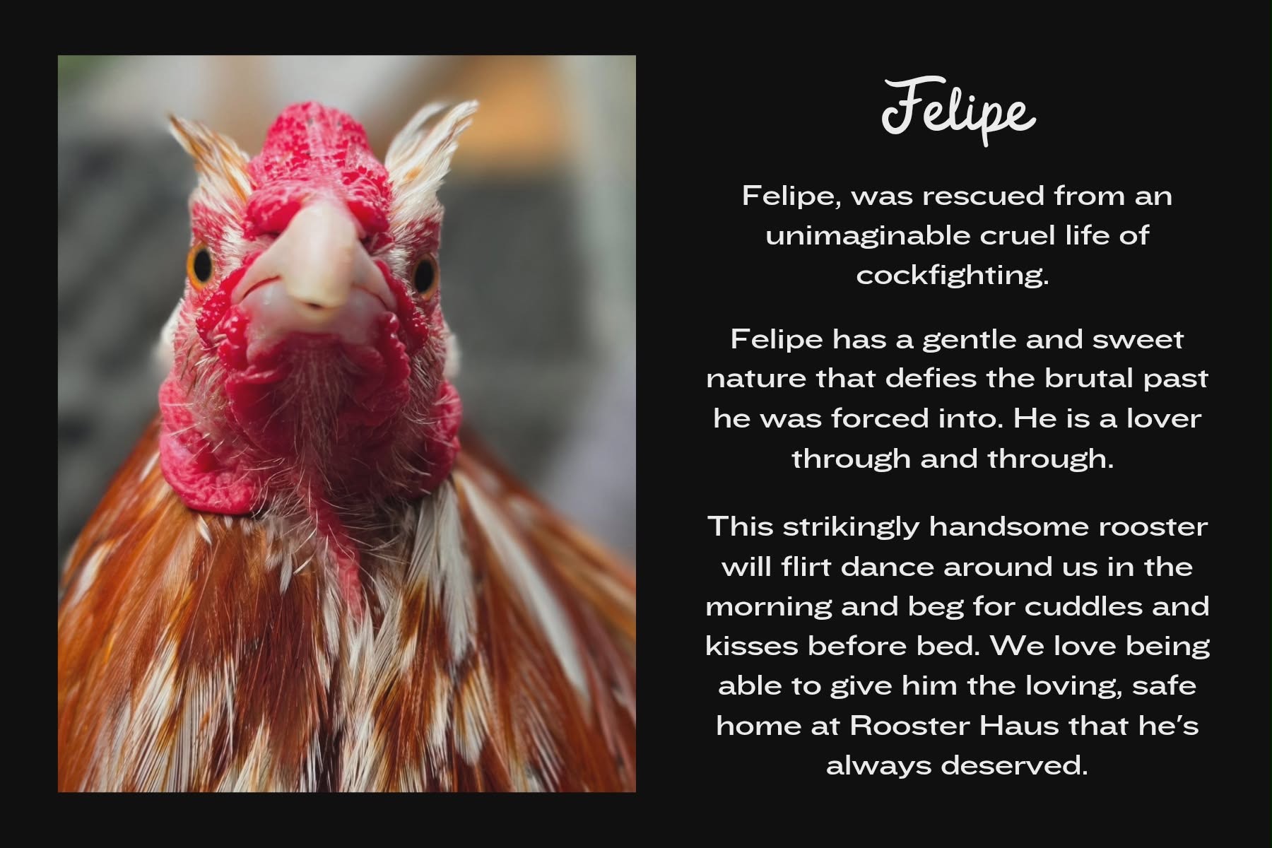 Friendships are blossoming all over the sanctuary. Last spring we introduced hens rescued from the most recent cockfighting bust we assisted with to our cockfighting survivors in our now-complete Survivor Suites, and these companionships have been blooming in the most beautiful ways. You can help them flourish by sponsoring a sweet pair or trio of our rooster and hen survivors, or one of our solo roosters who hasn’t found companionship yet.